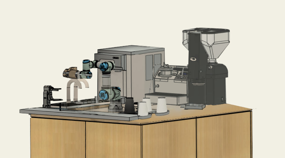 - Artly barista module that contains coffee equipment and robotic arm